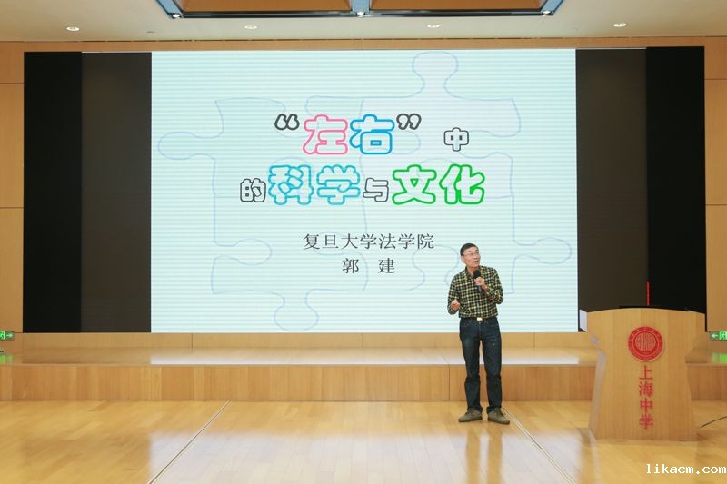 “上中-复旦导师制计划”系列讲座之“‘左右’中的科学与文化”2024年12月8日晚,我校有幸邀请到了复旦大学法学院的郭建教授,于甄陶楼报告厅,为同学们带来一场主题为“左右中的科学与文化”的讲座。(郭建教授为同学们带来“‘左右’中的科学与文化”讲座)郭教授由一个趣味的乘车礼仪测试引入,并邀请了6位幸运同学进行原地360°转体。同学们观察到,一般人在转体或转环时,更倾于左转。教授又列举了许多赛道、楼梯的例子,揭露了“...