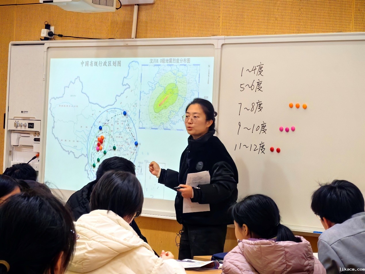 我校本部地理组单丽雯老师于12月25日上午在甄陶楼录播教室开设过关课。校教学处主任树騂老师、副主任李峰云老师及地理教研组的全体老师们观摩并参与评课。单老师开设的公开课题目为《灾难与重生——汶川地震的地理审视》。单老师通过“2008年发生的大事”“2008年5·12汶川大地震”导入,提出问题:为什么汶川会发生8.0级地震?从而引起学生兴趣。接着,课程围绕汶川地震的参数、成因、危害等内容,通过问题链和等烈度线的活动,启发学生思考。...
