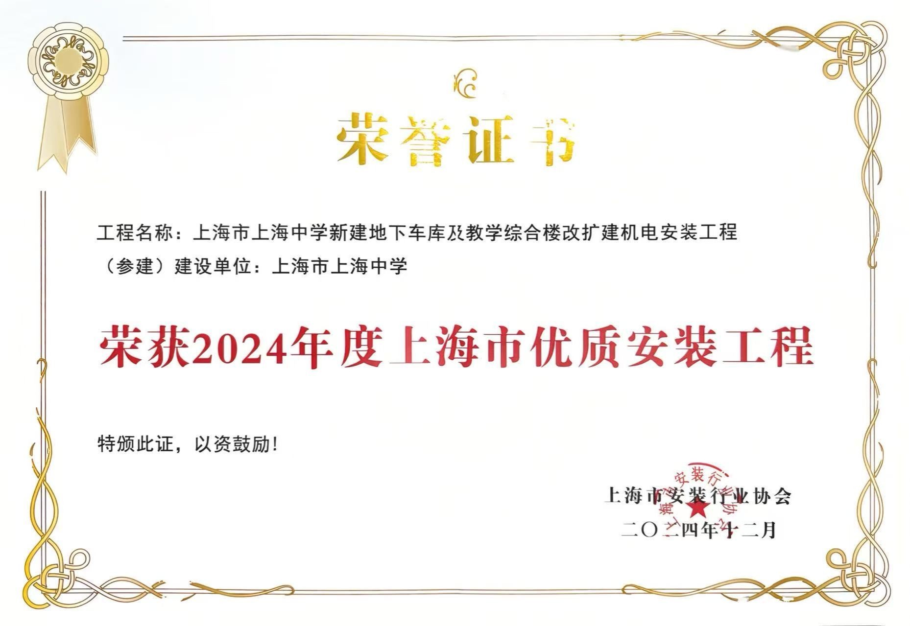 喜报:我校“新建地下车库及教学综合楼改扩建项目”机电安装工程荣获“2024年度上海市优质安装工程”