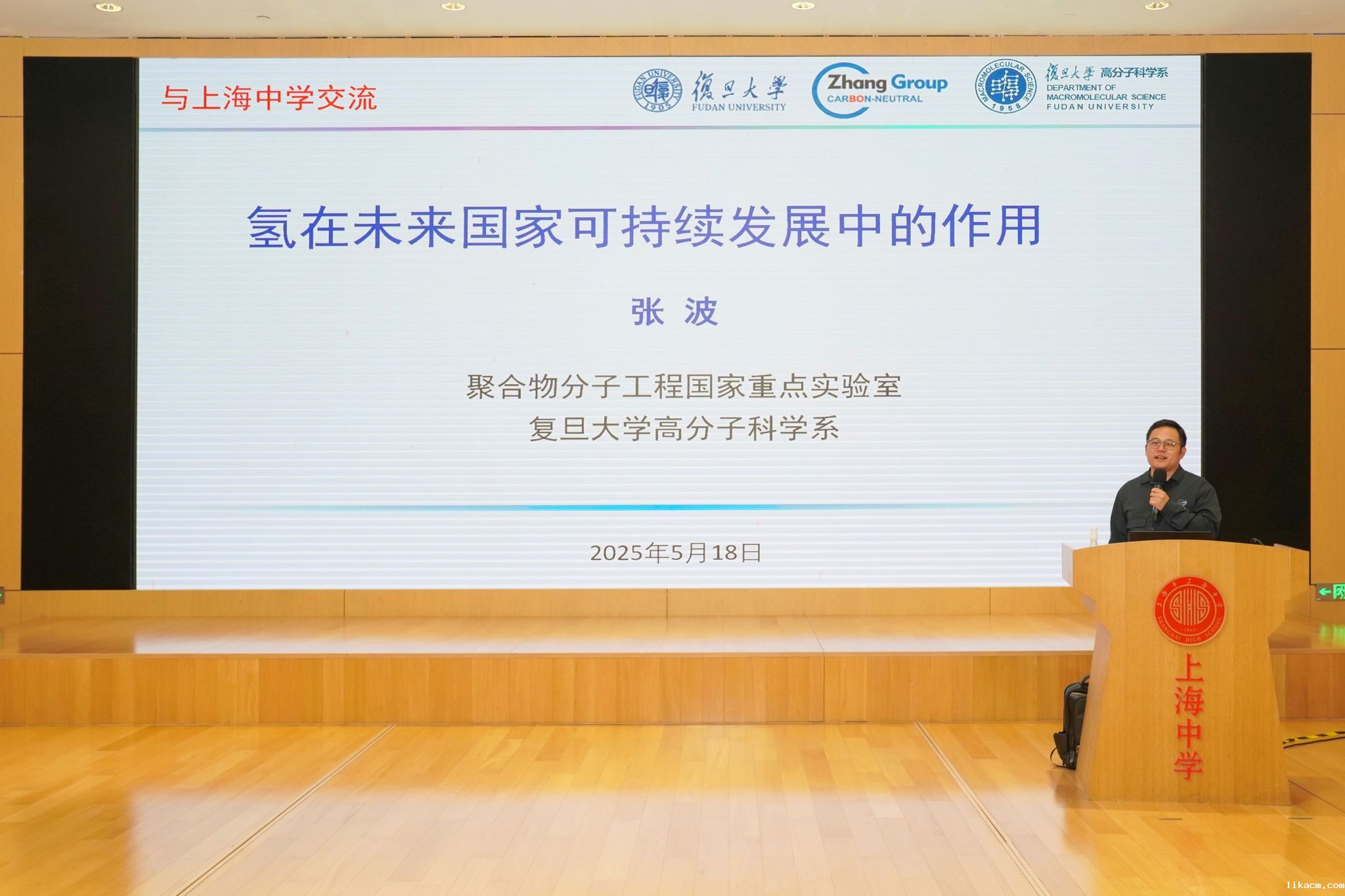 “复旦-上中导师制计划”系列讲座之“氢在未来国家可持续发展中的作用”2025年5月18日,复旦大学高分子科学系聚合物分子工程国家重点实验室的张波教授为参加复导计划的同学做了题为“氢在未来国家可持续发展中的作用”的讲座。张波教授从基本无机化学中氢的结构与性质出发,首先介绍氢能源燃料的概况,其次讨论了氢的储存与氢能优势,然后以电解制氢为核心,重点介绍了课题组在质子交换膜(PEM)水电解方面取得的科研进展。最后,张波教授鼓励各位同学做“...