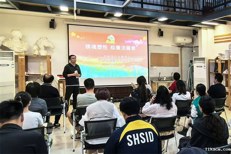 6月23日中午12:15音体美计支部于美术中心召开了主题党日活动,会议由支部书记陆辉老师主持,特邀学校"爱国荣校"宣讲团刘庆刚作专题党课讲座,支部全体党员参加了学习。(支部书记陆辉老师主持活动)(支部全体党员参与学习)此次活动以“铸魂塑性 绘廉洁篇章”为主题,刘庆刚老师以《正风肃纪反腐是新时代管党治党的重要抓手》为题,通过“作风建设关乎党的形象”、“纪律建设是治本之策”、“反腐败斗争是重大政治斗争”三大维度,结合《...