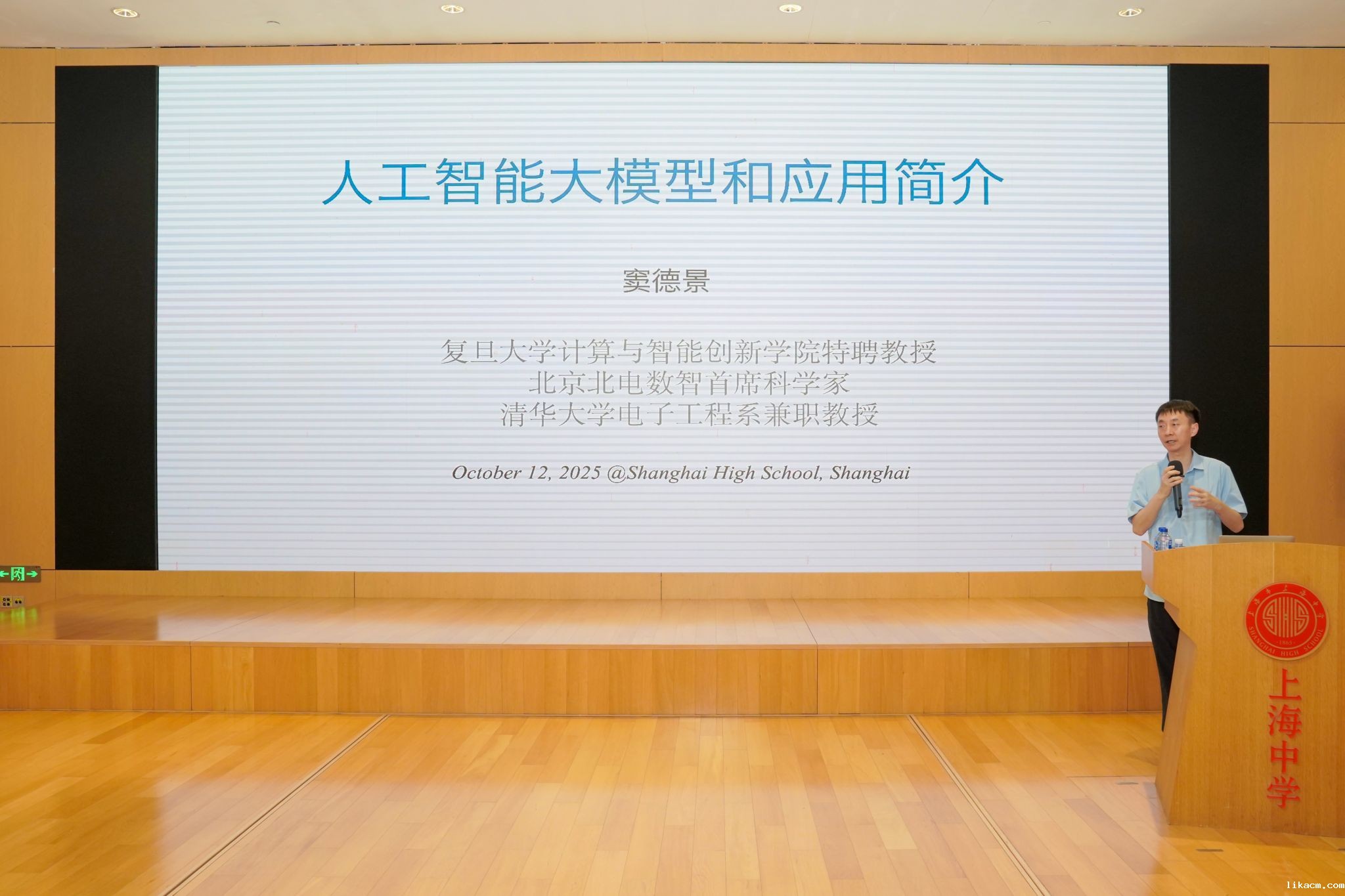 “复旦—上中导师计划”系列讲座之“AI 变革与未来展望”2025年10月12日,复旦大学窦教授给同学们带来了一场精彩的讲座。首先教授讲述了人工智能几百年的历史,他从1642年第一台机械计算机问世讲起,串起了二进制、图灵机、深度学习网络等事物,并着重讲了进入21世纪以来,诸如深蓝、AlphaGo等人工智能在竞技等方面迅猛发展、与人类抗衡的历程,说清了生成式人工智能和大模型是最具吸引力的变革,并且具有很高的颠覆潜力。其次,教授讨论了人工智能在生活中的应用。...