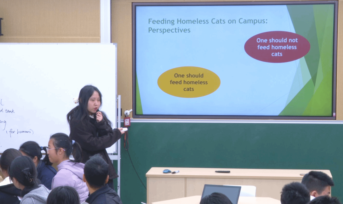 2025年11月28日上午,本部英语组的新教师孙若绮老师于影视中心二楼录播教室开设了新教师校内过关公开课,校教学处主任树騂老师、英语教研组组长李萍老师及英语组内其他老师观摩并参与评课。(孙若绮老师开设过关课)孙若绮老师的这节课聚焦议论文段落写作,带领学生开展了关于是否应该喂养校园流浪猫的讨论,进行思维导图展示、当堂写作和互评活动。孙老师首先以贴近日常生活、充满思辨性的喂养校园流浪猫话题入手,采用数智赋能的多媒体教学手段,...