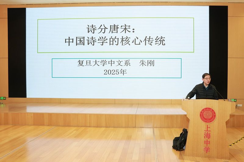 “复旦-上中导师制计划”系列讲座之“诗分唐宋:中国诗学的核心传统”2025年11月30日,复旦大学的朱刚教授给同学们带来了一场名为“诗分唐宋”的精彩讲座。教授先介绍了“诗”体的充分发展历程,从最早的《诗经》到广泛的“诗歌”概念的演变过程,从历史和体例两个维度介绍了何为“诗”,引出今日所谈及的“诗”是狭义上的诗。然后,教授从历史上“诗”的作用出发,分析唐诗与宋诗的区别,谈到了科举对士人作诗积极性的影响,进而阐述其对“...