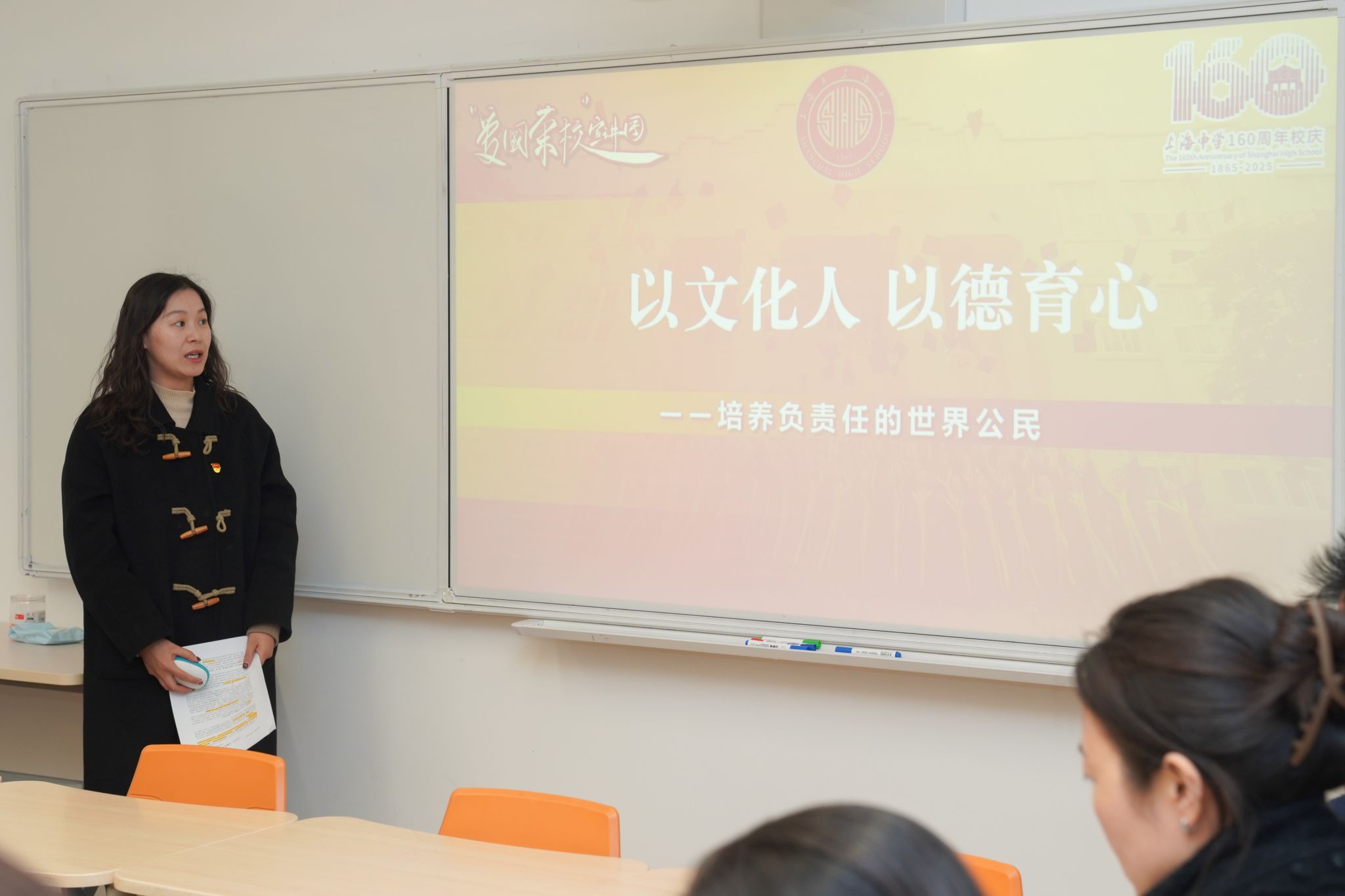 11月27日下午16:10音体美计支部于中兴楼103教室召开了11月主题党日活动,会议由陆辉书记主持。此次主题党日活动邀请爱国荣校宣讲团成员、国际部第一支部刘香老师和第三支部陈琳老师作专题党课分享。国际部第一支部刘香老师以“以文化人,以德育心——培养负责任的世界公民”为主题,分享国际部初中段汉语学科育人实践。她指出,中文是传承中华文明的重要载体,学科团队通过文化周、文化月等系列活动,将中华优秀传统文化融入日常教学,...