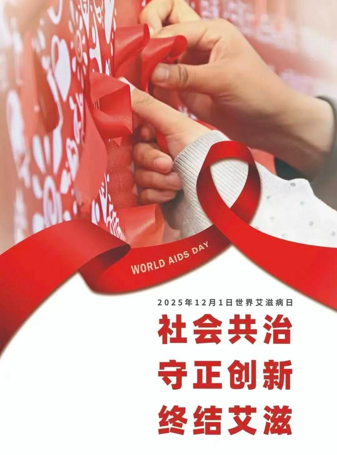 2025年12月1日是第38个“世界艾滋病日”。我国今年“世界艾滋病日”宣传活动主题为“社会共治,守正创新,终结艾滋”,旨在深刻认识艾滋病防治工作的重要性和长期性,在总结、继承既往有效防治工作经验和典型做法的基础上,进一步倡导社会各界共同承担艾滋病防治责任,加强艾滋病防治措施的探索创新,推进艾滋病防治工作高质量发展。