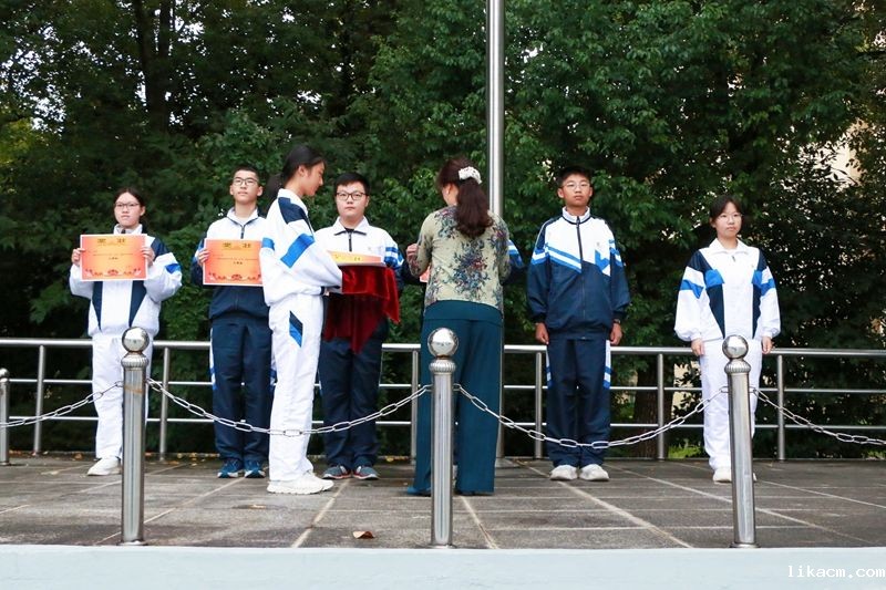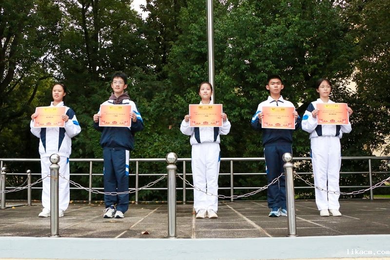 让我们恭喜以上获奖同学和班级,请获奖的同学和班级代表上台领奖。有请杨崝源老师为他们颁奖。