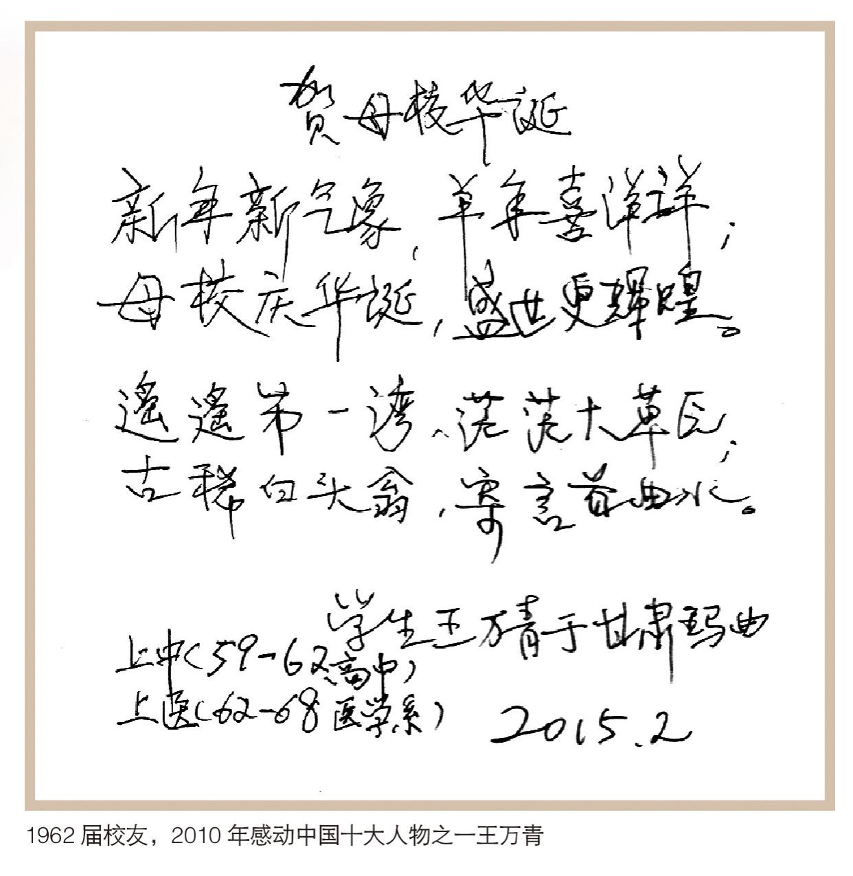 他曾于2012年9月29日,在甘肃省卫生厅厅长及驻沪办主任的陪同下重返母校,接受学校电视台采访,感怀上中往事。