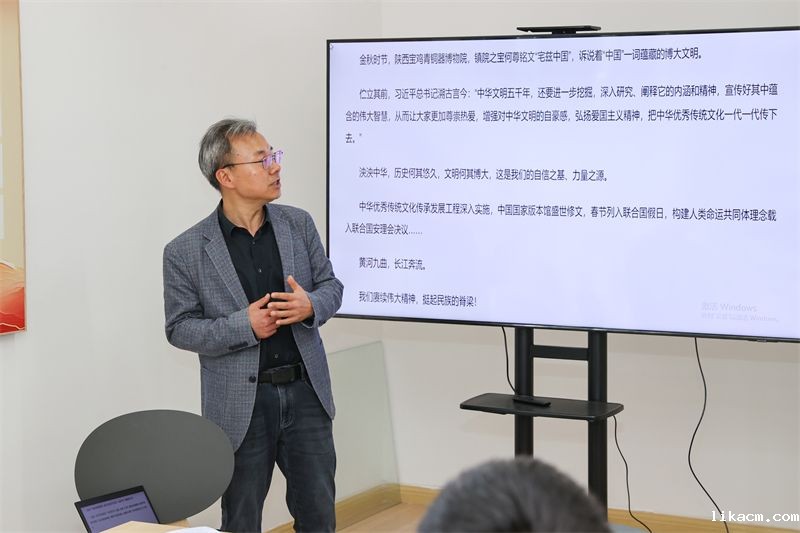 接下来,俞老师以《让明天的中国更美好——写在中华人民共和国成立75周年之际》为例,展开分析。俞老师展示河南博物馆何尊,指出其中“ 宅兹中国 ”为“ 中国 ”一词最早的文字记载。继而,俞老师提出问题,如何把中国变成一个可以依恋的地方?应该建设美丽中国,对祖国心怀热爱、充满自豪。然后,俞老师又结合语文课文《中国人民站起来了》分析建国初期毛泽东擘划的美好蓝图,在当时是未来时,对我们而言是现在时。而面向未来,我们应为了明天的中国更美好而不懈奋斗。