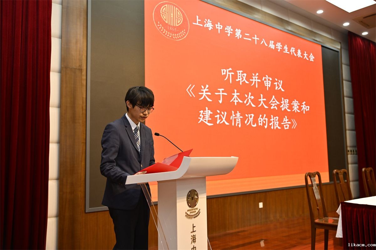 (校第二十七届学生会副主席宋肇轩同学就本次大会的提案和建议情况做报告)