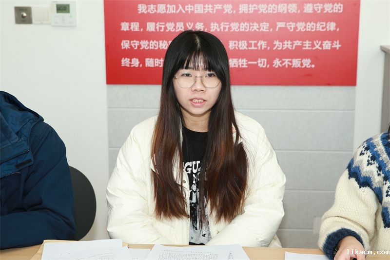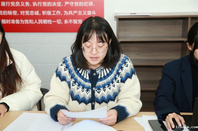 随后,入党介绍人刘庆刚老师、费娜老师分别介绍了两位预备党员的相关情况。刘庆刚老师对梁宇欣老师的业务能力表示了肯定,认为她具备了一名共产党员应有的素质和担当。费娜老师则高度评价了周佳老师的工作态度,认为她不仅在工作中表现出色,更在思想上与党组织保持高度一致。