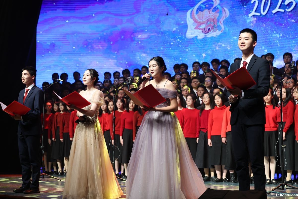 歌曲串烧节目通过多首经典曲目的巧妙编排,与西楼分会场实现了同步互动。混声合唱团、高二(10)班、初二(1)班、高二(9)班带来的歌曲串烧,以丰富的表演形式和深情的演绎展现了青春的活力与自信。从《Seasons of Love》到《上春山》,每一首歌曲都吸引着观众,现场掌声经久不息。