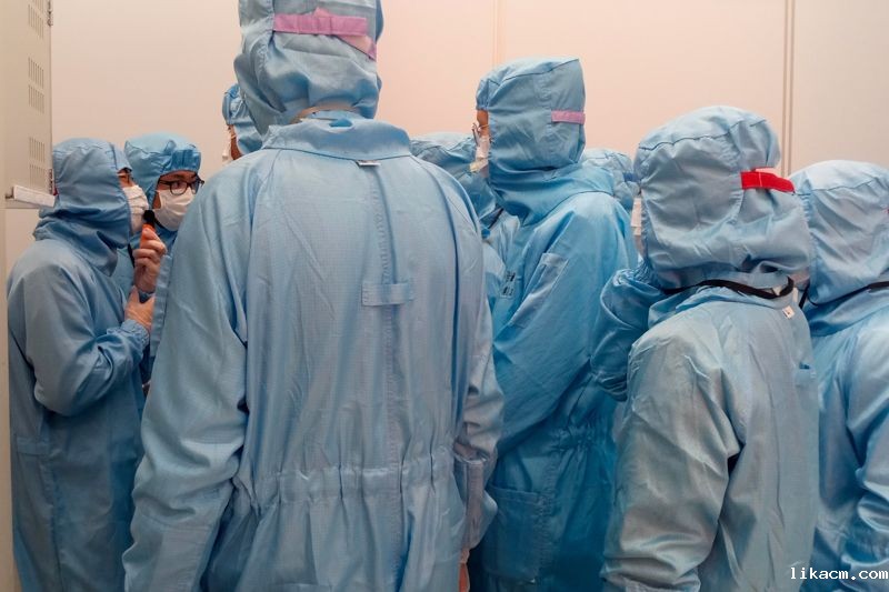 接着,参观者一行来到台积电中最具科技气息的区域——FAB(半导体制造厂)。在经过手部清洁、无尘服穿戴和吹风除尘等多个流程后,同学们成功进入工厂的参观区域。机器运转的声音振奋人心,解说人员的介绍娓娓而来,同学们款款而行,见证了半导体生产的各种技术:物理气相沉积、化学气相沉积、光刻、微影曝光、离子注入……FAB内的精密仪器、控温除尘设备、纵横交错的气体管道让同学们惊叹连连;WID(晶圆代码)使全周期监控和流程可溯也令人钦佩。这些见闻让同学们感到我国的芯片生产技术正在不断进步,相信终有一日,我们可以凭借技术的创新创造建成当之无愧的科技强国。