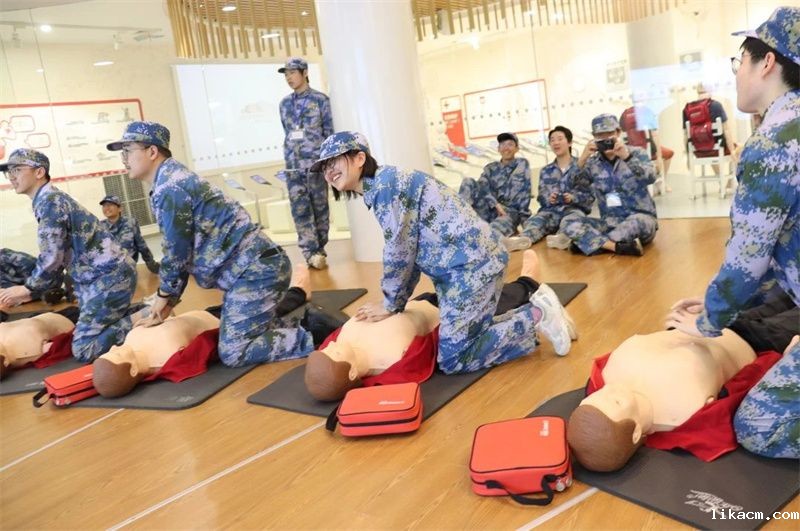 公共安全实训馆内,同学们积极参与训练,深入了解安全知识,心怀对生命敬畏,展现乐观韧性与互帮互助精神。