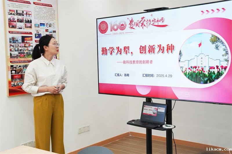 陈希老师进行了“爱国荣校” 宣讲,主题为 “勤学为犁,创新为种”。她回顾学校在科技教育领域的成就,如入选全国中小学科学教育实验校、开设多元科技实验组等。介绍了学校多层次、高选择性的课程体系,包括 STEM 课程、专门课程等,以及丰富的科技周活动和大中学合作项目。同时展示了学校创新实验平台集群,如脑科学与人工智能实验中心等,为学生研究提供支撑。在成果展示环节,陈希老师列举了学生在各类科技创新大赛中获得的众多国际、国家及市级奖项,以及科创教师团队所获荣誉,如明日科技之星导师奖等,凸显学校科技教育实力与教师专业素养。