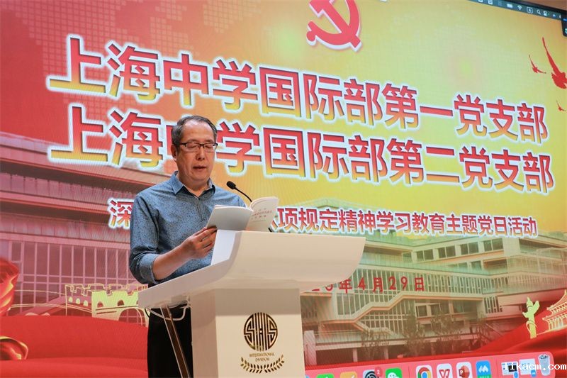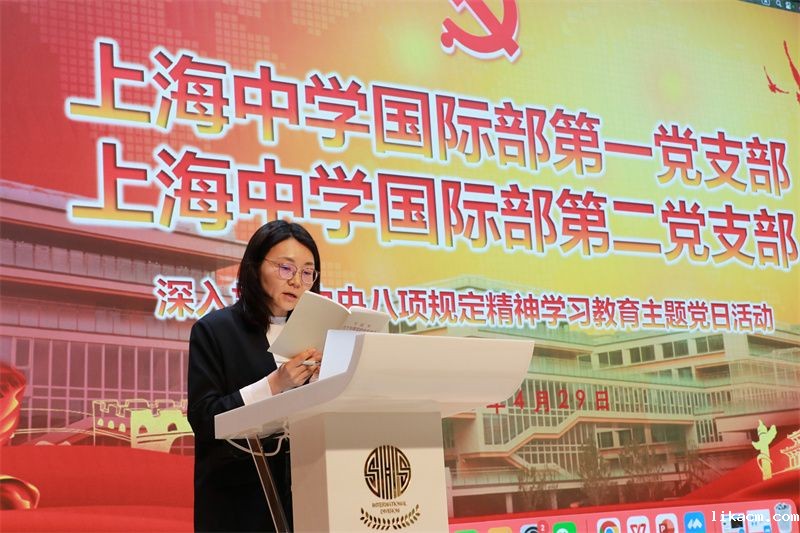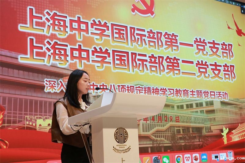最后,党委委员刘炼老师做了总结发言并要求党员老师深入学习八项规定的精神,每位党员都要认真参与加强党的作风建设的学习,并且要与自身的教育教学活动相结合。刘炼老师勉励大家学习以李英校长为代表的新时代党员教师的先锋模范作用与教育家精神的深刻内涵。通过身边榜样的力量,激励党员老师坚定理想信念,以更饱满的热情投身教育事业,为国际部的发展建设添砖加瓦。