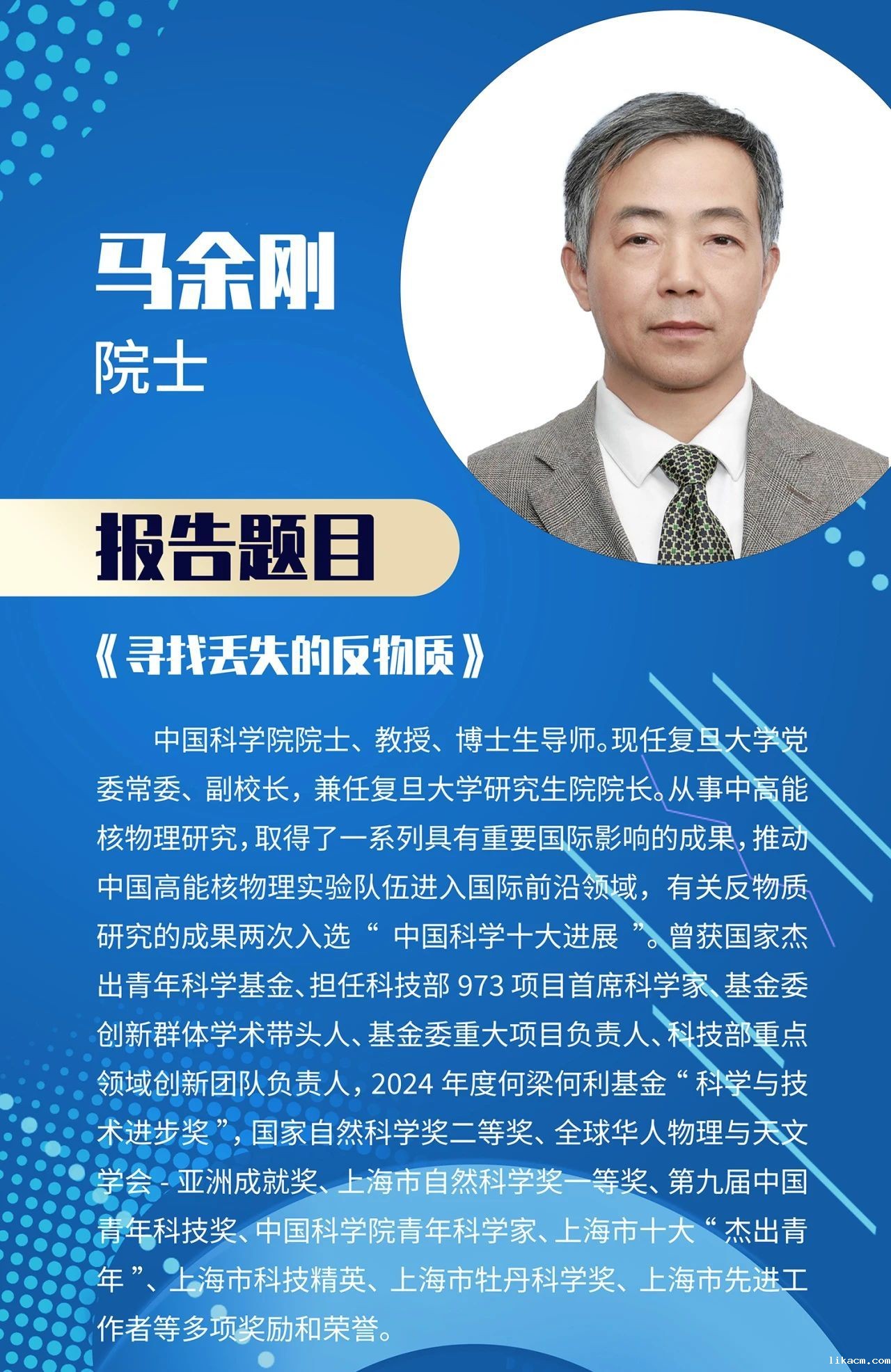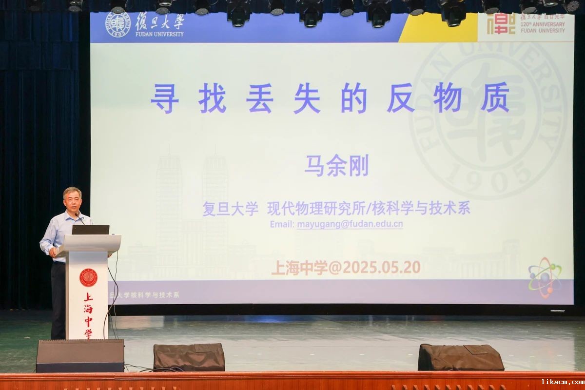 中国科学院院士、复旦大学党委常委、副校长马余刚教授出席活动并于大礼堂作题为《寻找丢失的反物质》的学术报告。马院士长期深耕中高能核物理领域,在反物质研究方面贡献卓著,成果两度入选 “中国科学十大进展”。在报告中,他以《天使与魔鬼》中的经典片段开篇引入物质与反物质的概念,展示了人类认识物质的过程。马院士向同学们介绍了寻找反物质的两种途径以及目前反物质研究的成果与挑战,以详实的实验数据,向同学们展示了cpt对称性等反物质的神奇之处。学生处主任杨炯主持活动现场。