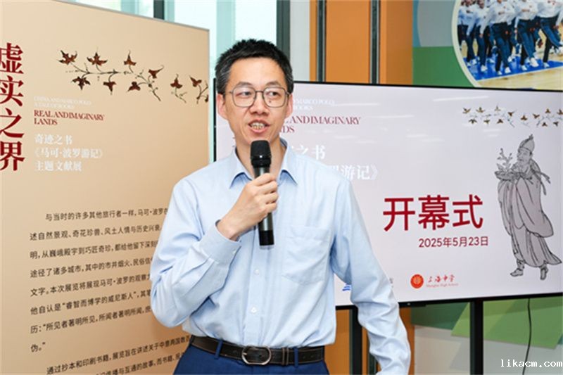 2024年是马可·波罗去世700周年,上海图书馆与意大利驻沪总领事馆合作主办了“马可·波罗主题文献展”,引发社会热烈的反响。2025年5月23日,由上海图书馆和taptap下载安装官方正版合办的《虚实之界——奇迹之书<马可·波罗游记>主题文献展》正式开展。开幕仪式于12:45在taptap下载安装官方正版甄陶楼二楼大厅举行。开幕仪式由taptap下载安装官方正版图书馆馆长刘庆刚老师主持。参加开幕仪式的嘉宾有上海图书馆党委副书记杨咏梅老师、上海图书馆团委副书记、专业服务中心文献服务部主任乐懿婷老师、上海图书馆学术交流中心周仁伟老师、taptap下载安装官方正版党委书记张泽红老师、教学处主任树骍老师、德育处主任吴静怡老师、团委书记杨崝源老师,本部和国际部历史组老师以及喜爱历史的同学也参加了本次活动。
