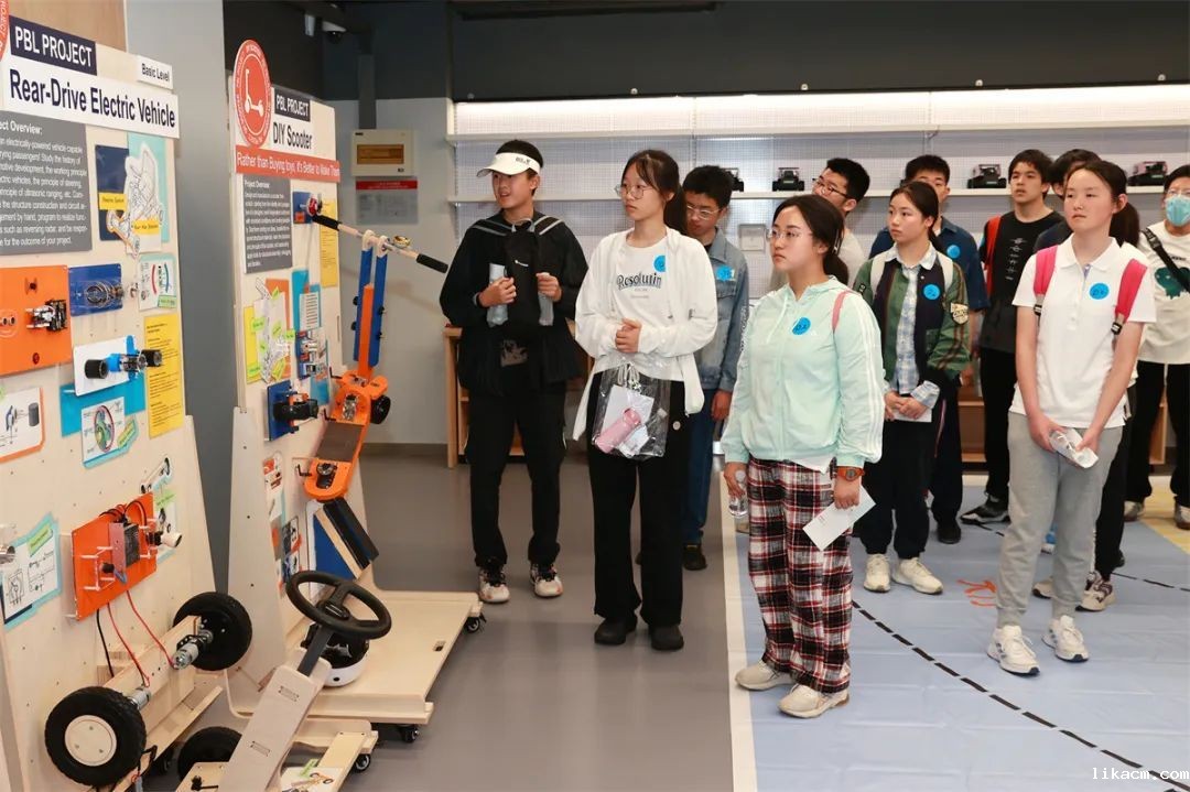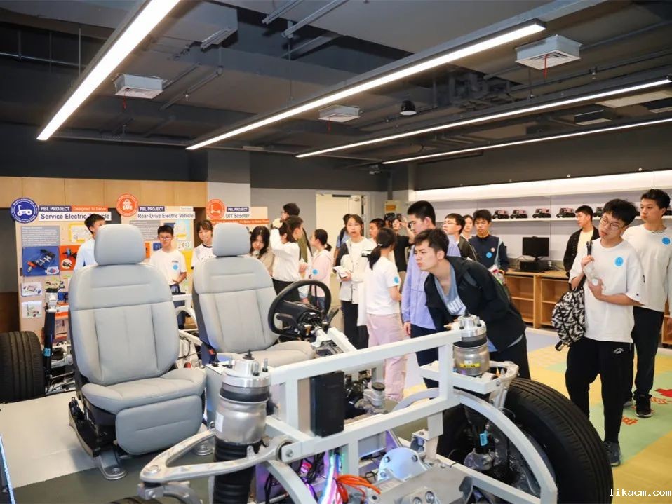 体育场馆与实验室参观环节成为亮点。学生依次参观羽毛球中心、壁球馆、健身房等设施,感受学校丰富的课外资源;创意实验室、木工坊、汽车实验室则激发学生的动手能力,不少学生在实验台上摩拳擦掌,模拟设计模型。