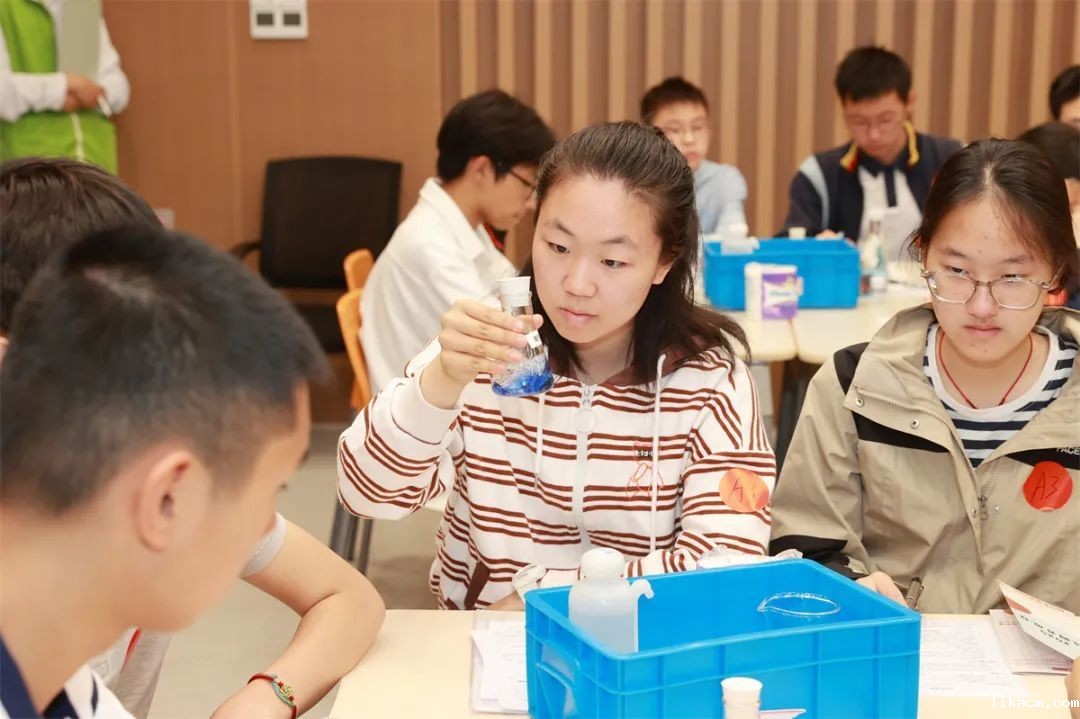 活动现场,学生们按分组参与化学、地理生物跨学科融合课等课程体验。