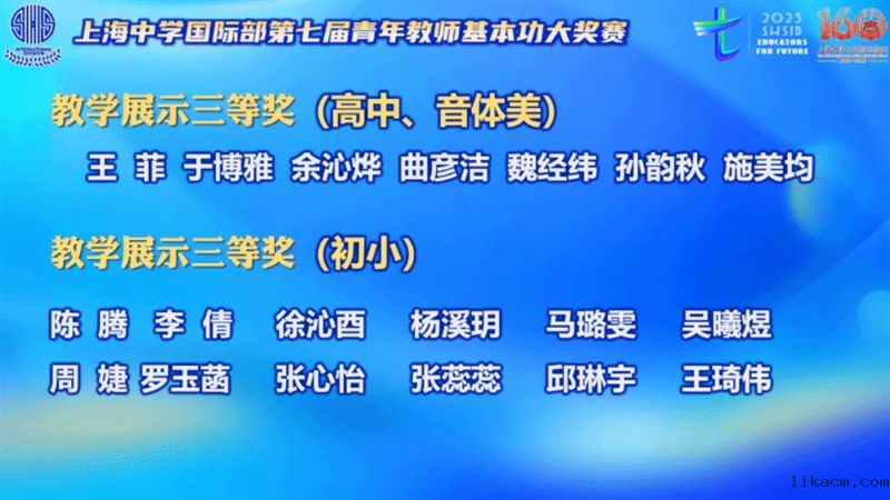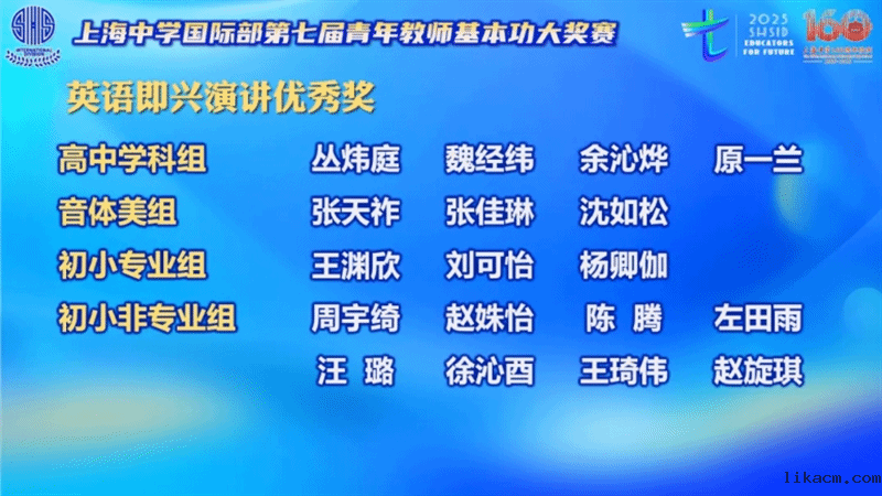 接着,主持人宣读了英语即兴演讲优秀奖、才艺提名奖以及教学展示三等奖的获奖名单。