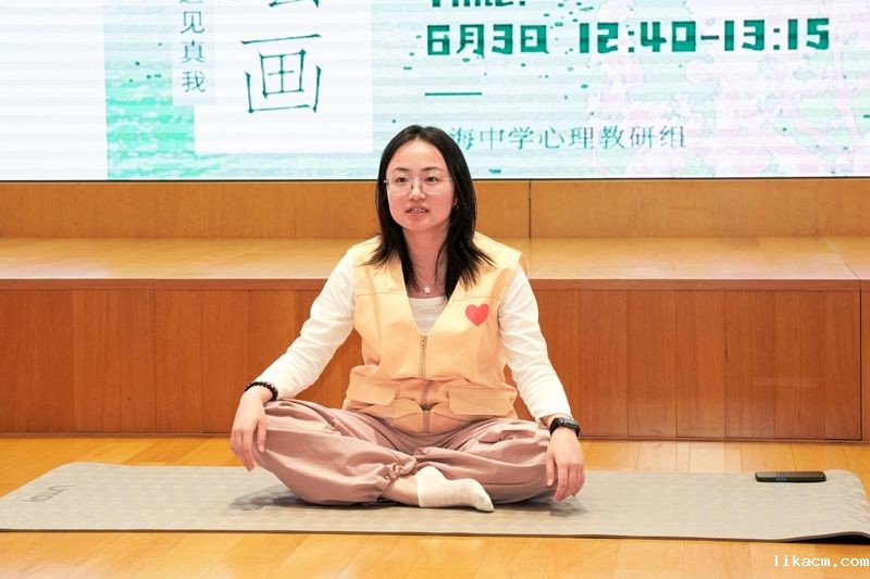 第一站:正念冥想—本次体验包括正念呼吸、正念身体扫描、正念瑜伽三个部分。“闭上眼睛,感受呼吸……”心理老师李洋青温柔的声音让现场逐渐沉静下来,引导大家在简单的体验中创造更多的内心空间。
