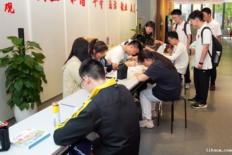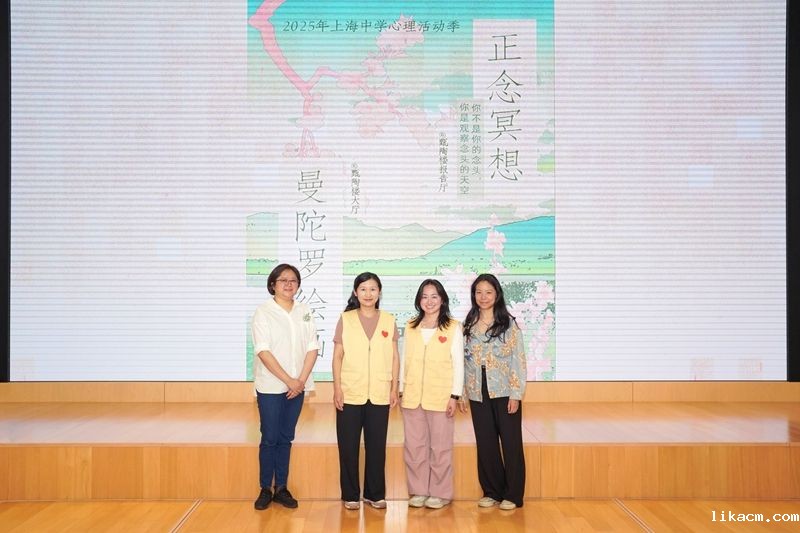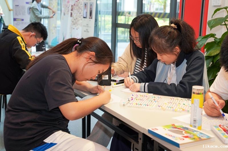 学校德育处副主任吴静怡老师来到活动现场与同学们互动。学校心理健康教育中心咨询师李洋青老师带领正念冥想活动,心理组江乐华老师引导曼陀罗绘画,全婵兰老师、余沁烨老师、季玮老师组织师生参与各项体验活动。