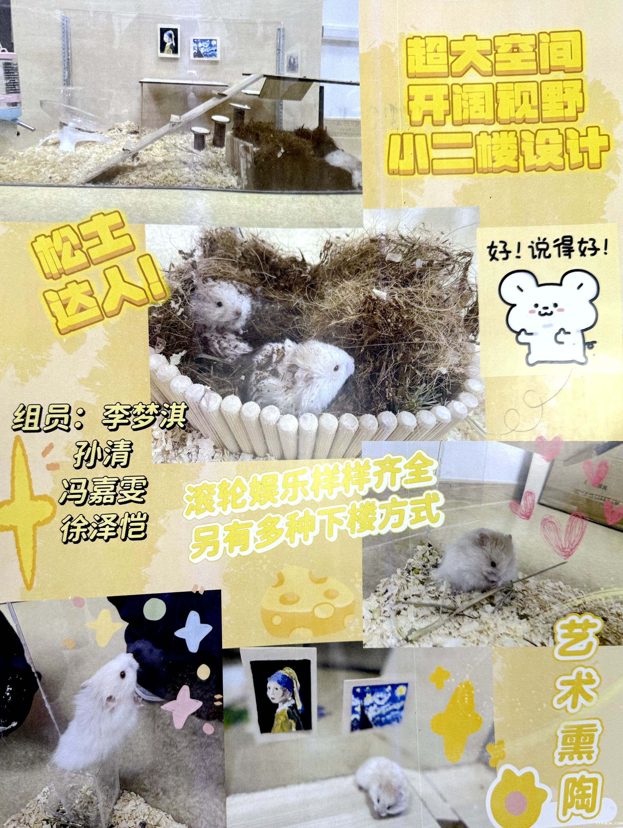 有的家园充满艺术气息,有的家园主打田园风,有的家园简洁清新,有的家园结实耐用。家园中躲避屋,运动跑轮区,饮食饮水区域一应俱全。本次课程需要学生运用生物学知识设计生态环境、利用物理原理搭建稳固结构,优化空间布局,并结合美学理念提升家园"治愈指数"。作品别出心裁,毛茸茸的"住户"与精巧的设计相映成趣。