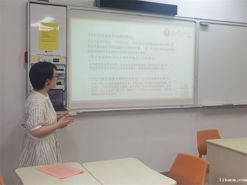 第三支部支委陈琳老师以《聚焦志趣、科创筑梦、寰宇逐光》为题,为国际部第四支部的党员老师们介绍了学校科创团队及科创人才培养体系。陈老师围绕教育家精神的实践展开,涵盖多维度课程建设,如PBL课程培养学生综合能力;协同合作的团队培养,多部门老师各司其职;科创竞赛支持机制,为学生科研全程护航;校内外科学教育资源有效衔接机制,拓宽学生学习视野。通过这些举措,上中国际部的科创教育成果丰硕,为培育创新人才奠定坚实基础,也是国际部科技指导工作为学校160周年校庆的一份献礼,同时也是积极践行教育家精神及发扬爱国荣校精神的最好体现。