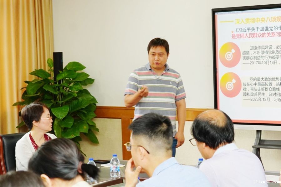 纪委委员朱观华同志作题为《擦亮新时代党的建设 “金色名片” 以学习教育推进党的作风建设 —— 以 <中央列出违反八项规定清单 80 条 > 中的 “公务用车与办公用房” 为例》的学习教育系列宣讲第四讲,并领读《习近平关于加强党的作风建设论述摘编》之 “三、作风问题核心是党同人民群众的关系问题” 章节内容,强调作风建设对党的形象和群众拥护的重要性,提醒大家严守中央八项规定精神,抵制 “四风” 问题。