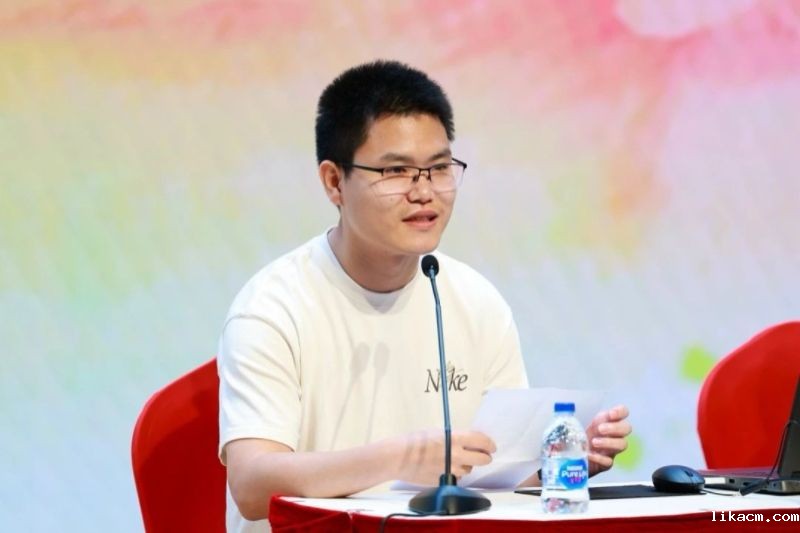 周天佑老师作为学生处代表发言,汇报题目为“回归初心 —— 八班数学教学经历与感悟”。他针对竞赛生的特点,用三角函数解几何、手枪打靶模型等趣味案例激发兴趣,以扎实的学识赢得学生尊重。让学生“玩中学”,在挑战中爱上数学。
