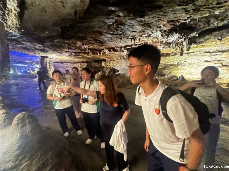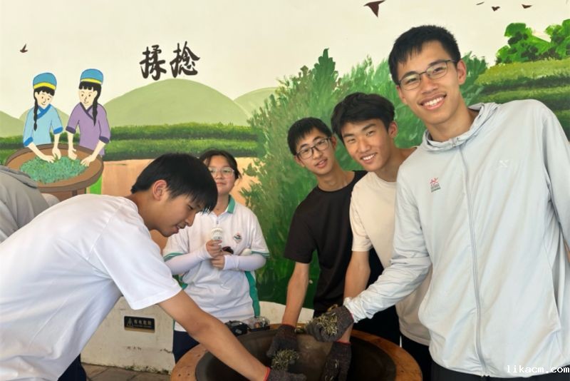遵义也有着丰富的绿色研学资源,上中师生前往“十二背后”,深入溶洞,领略壮美的喀斯特地貌风景;师生还同爬三十六级天梯,登上飞虎关,体会古代中国对多族群聚居地区管理和多元文化保护的独特智慧;同时,师生们还深入茶园,从采茶到炒茶,亲手完成一份茶叶的制作。