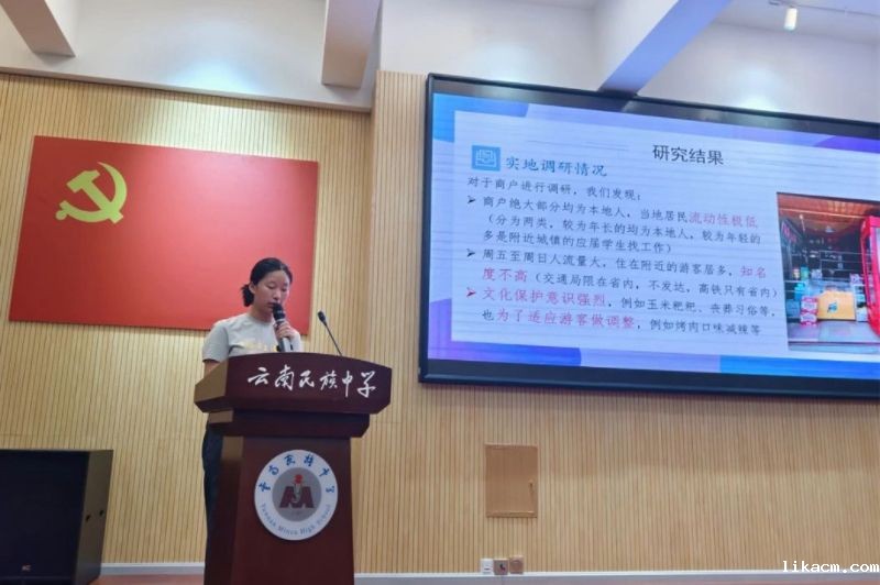 最后,各“国情民风”社会考察小组整理调研成果,形成完整报告并进行了汇报展示。“古镇商业化”“少数民族语言传承”等富有现实意义的课题成果彰显了上中学生心怀天下,以促进社会发展为己任的责任担当。
