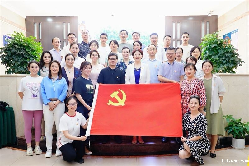 党委书记张泽红,党委副书记兼工会主席樊新强,工会副主席陆辉,工会委员代表徐承志、俞政,工会组长代表孙灏于门厅前合影。