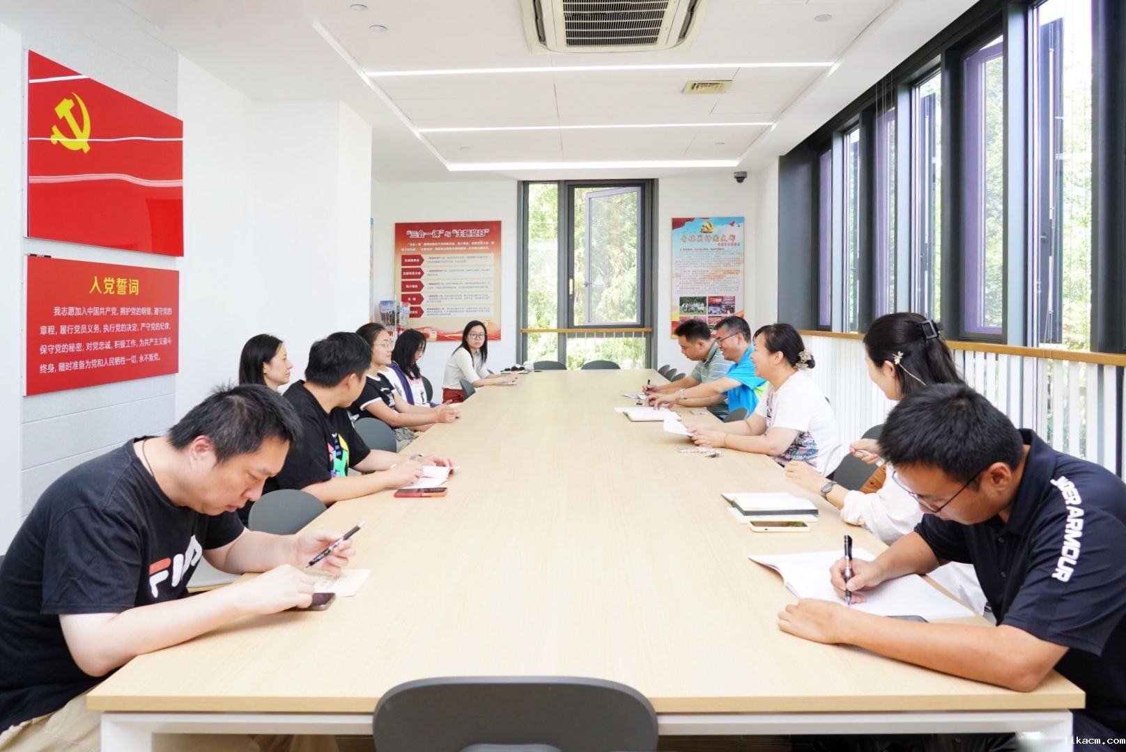 (党员认真听讲、记笔记)