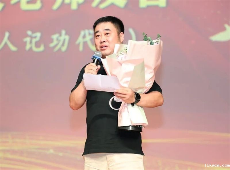 回波老师作为记功代表发言。他表示这个奖是上中乒羽班全体师生共同努力的成果。他代表学生们感恩学校校长室、全体教师,以专业与爱心守护成长,助力学子圆梦求学之路。
