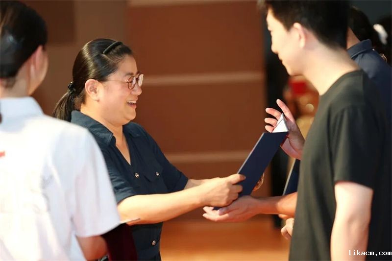 张泽红书记为第四届师德标兵与服务明星颁发证书。获奖教师在掌声中接受荣誉。
