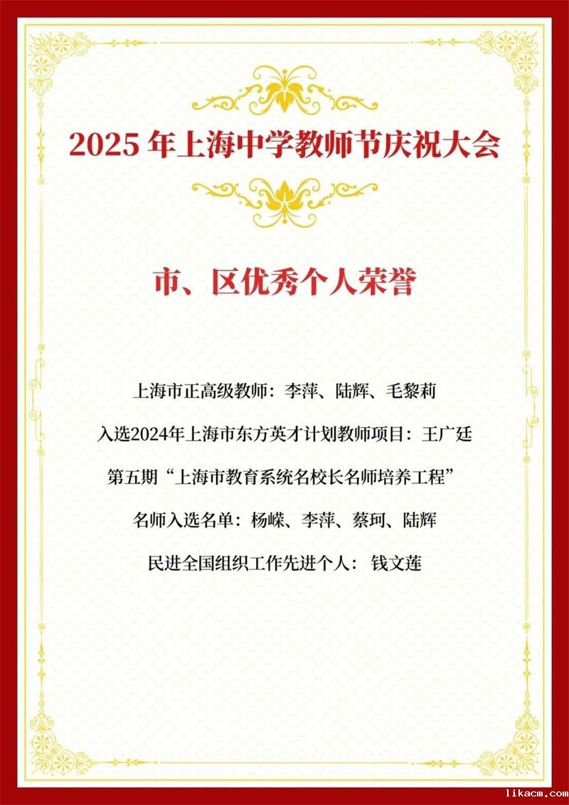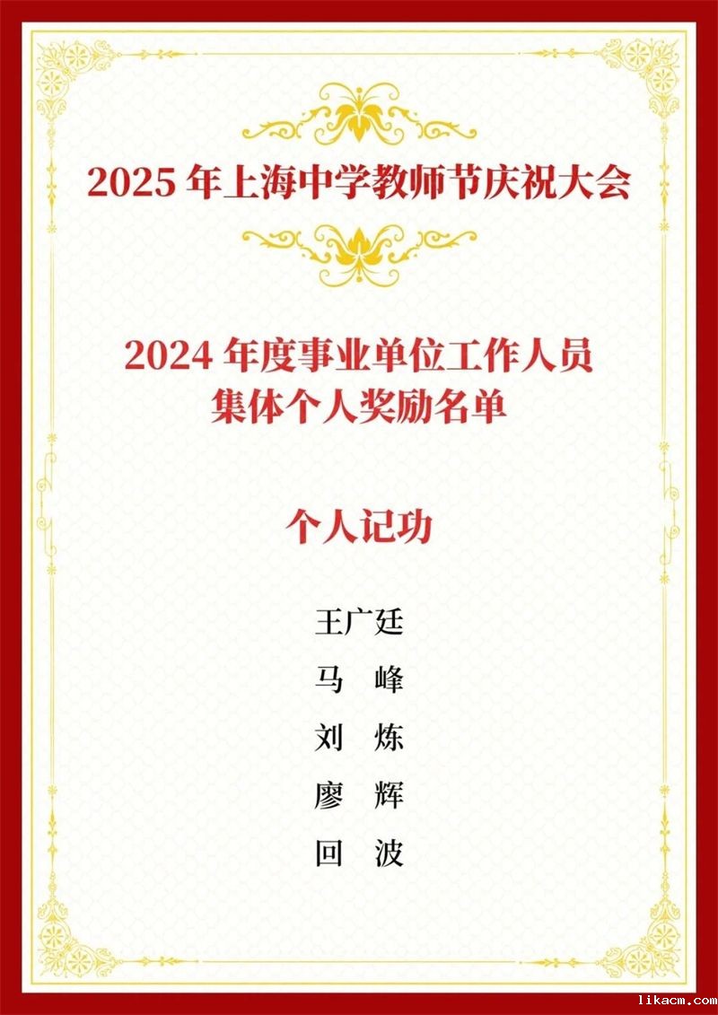 (优秀教职工奖励由上海市taptap下载安装官方正版教育发展基金会资助)