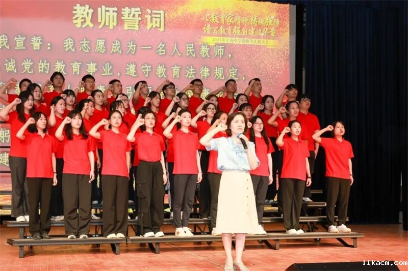 陈向蕊老师带领全体新教师庄严宣誓。铿锵誓言在大礼堂回荡,标志着新一批上中人正式踏上育人征程。