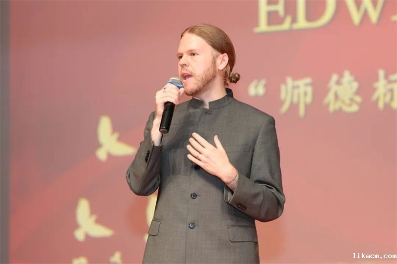 外籍教师Edward Key作为模范教师代表发言。他引用莎士比亚名句,盛赞上中兼容并包、传承与创新并重的校园文化,并感谢学校给予的成长平台。