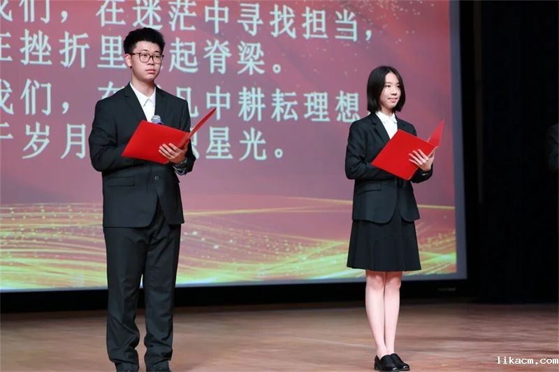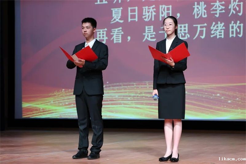 “您教导我们,在迷茫中寻找担当,在挫折里挺起脊梁。您带领我们,在平凡中耕耘理想,于岁月里编织星光。”高二(3)班朱钱宸、谢昕彤,高一(3)班蒋浩宇,高一(10)班刘雨棠四位同学登台,共同朗诵原创诗歌《龙门巍巍,百六荣光》。学生们用清亮的嗓音向老师们献上真挚祝福,赢得全场掌声。