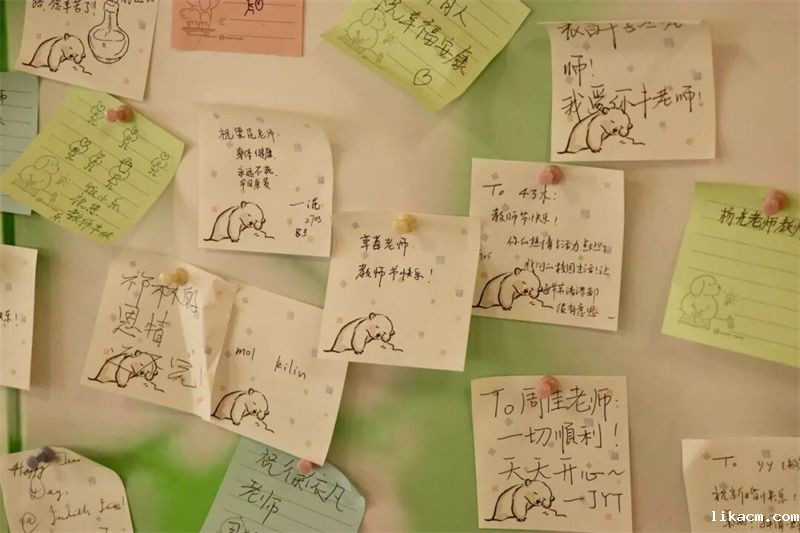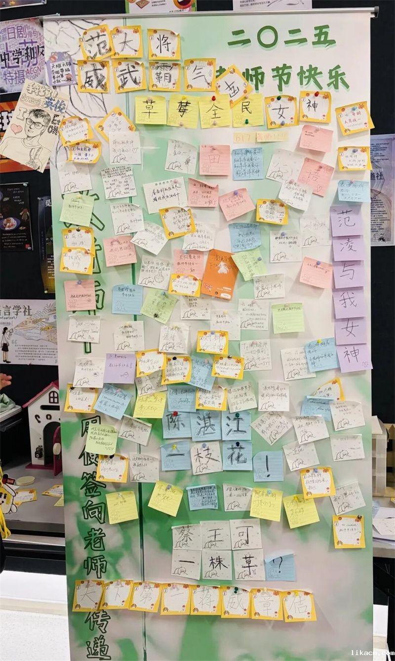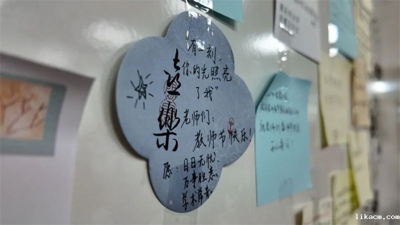 龙门楼与甄陶楼的一角,悄然漾开了温暖的涟漪。各色便签缀满展板,如秋日纷落的叶,又似不曾凋零的花。它们载着手写的祝福,在穿堂而过的风中,轻轻摇曳——那是学子们献给老师,最安静也最热烈的诗篇。