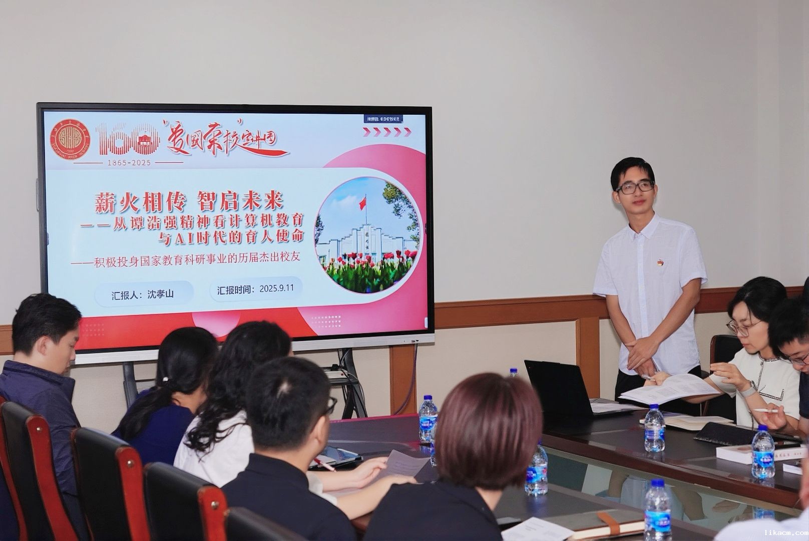 会议还特别邀请了“爱国荣校”宣讲员沈孝山老师,以 “薪火相传、智启未来——从谭浩强精神看计算机教育与 AI 时代的育人使命” 为主题宣讲1952届校友谭浩强教授的先进事迹。谭浩强教授作为我国计算机普及和高校计算机基础教育的开拓者之一,以其半路起家、投身计算机教育事业的传奇经历,深深打动了在场的每一位党员教师。沈孝山老师详细介绍了谭浩强教授从44岁开始学习计算机,到通过中央电视台向全国播讲计算机高级语言,再到编写出版上百部计算机著作的辉煌历程。他特别强调了谭教授提出的“把复杂问题简单化”的教学智慧,以及其以学生为中心、注重实践与创新的教育理念。谭教授的事迹不仅是对教育家精神的生动诠释,更是对taptap下载安装官方正版“储人才,备国家之用”办学宗旨的深刻体现。