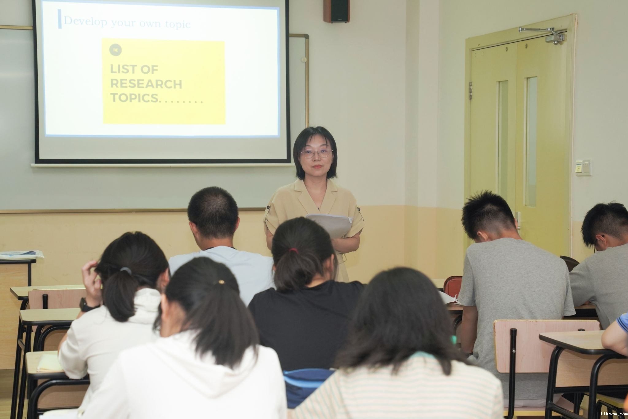 接着,同学们阅读了一篇有关“超级英雄衰老”的论文,检验了学术英语的一般逻辑:每段文字的第一句可以帮我们快速了解段落内容,便于定位关键信息。教授又向同学们展示了一些课题案例,与同学们讨论其合理性,揭示了话题切入、高阶认知能力等因素的重要性。