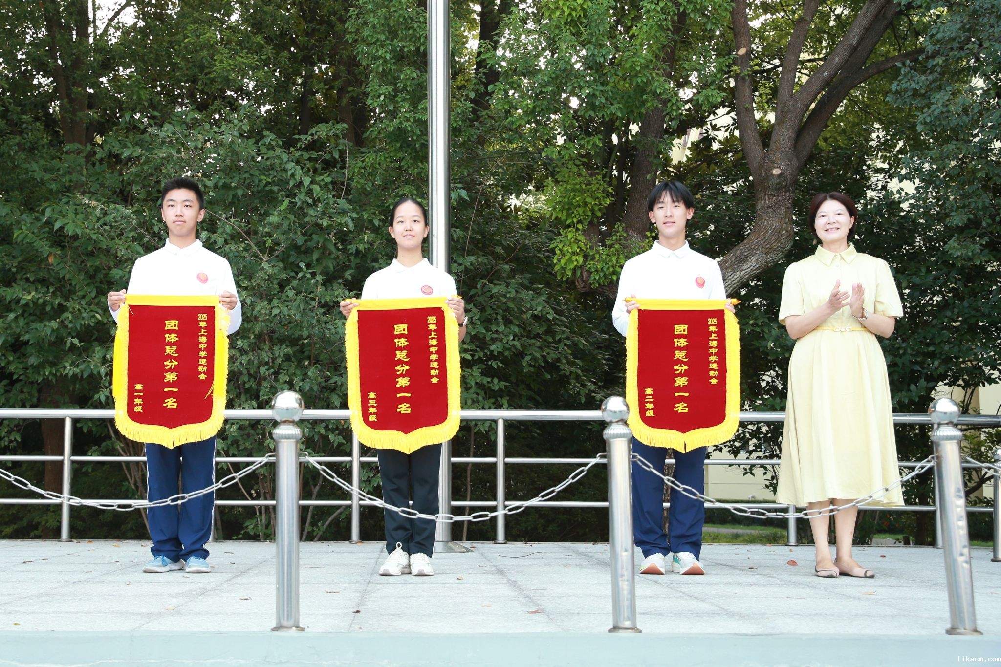 有请德育处副主任吴静怡老师和体育教研组组长陆辉老师为团体总分第二、第三的班级代表颁奖。