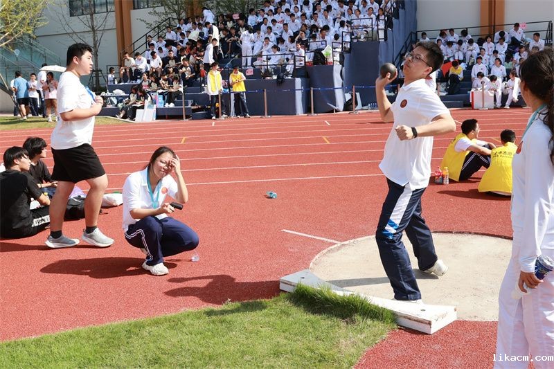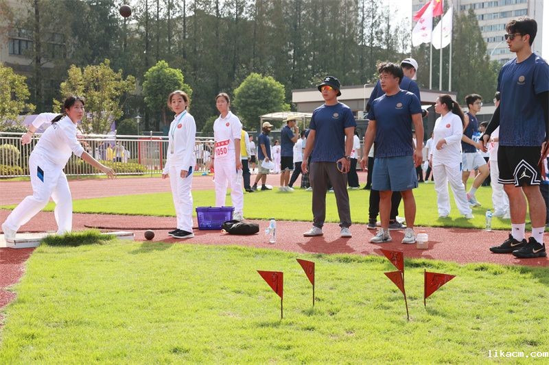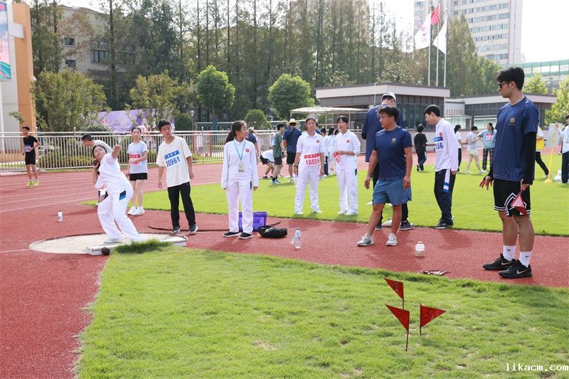 铅球项目考验着参赛选手们的力量、速度与技术。运动员们在投掷圈内,微微屈膝,接着快速旋转身体,借旋转之势将铅球从肩上迅猛推出,铅球在空中划出一道有力弧线,现场观众掌声不停,为选手们的精彩表现喝彩。