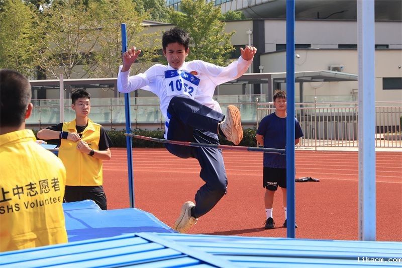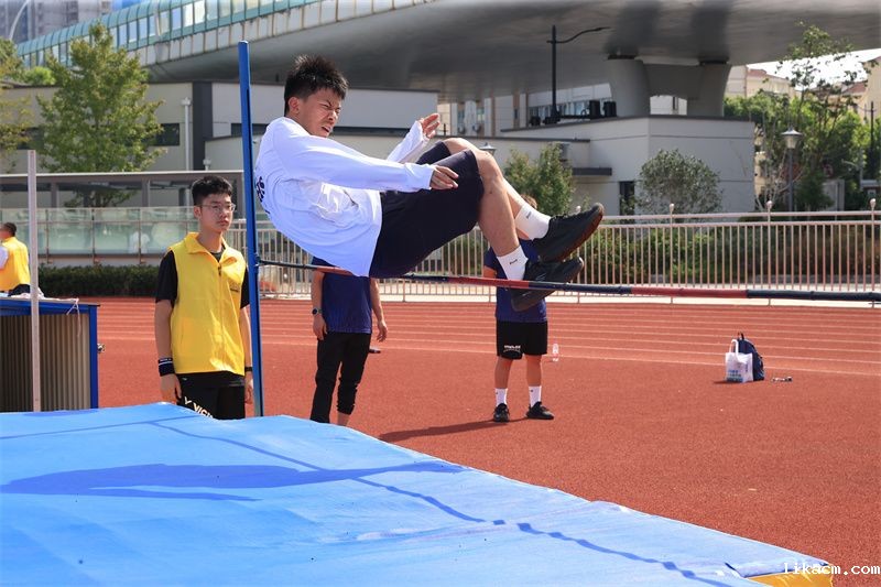 运动员们在大操场跳高场地前站定,深吸口气后开始助跑,步伐由慢到快,临近横杆时猛然发力蹬地,起跳后或弓身背越、或交替跨越,整个身体在空中划出一道轻盈又充满力量的弧线。在这短短几秒里,他们都将最佳状态倾注于每一次跳跃。