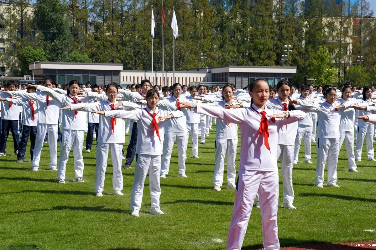 中午12点45分,全校大会操在大操场准时开启。伴着轻快的广播操旋律,同学们迅速列队站定,抬手、弯腰、踢腿、转身,每一个动作都整齐划一。微风中他们挺拔的身姿与专注的神情相映,共同勾勒出一幅朝气蓬勃的校园全景图。