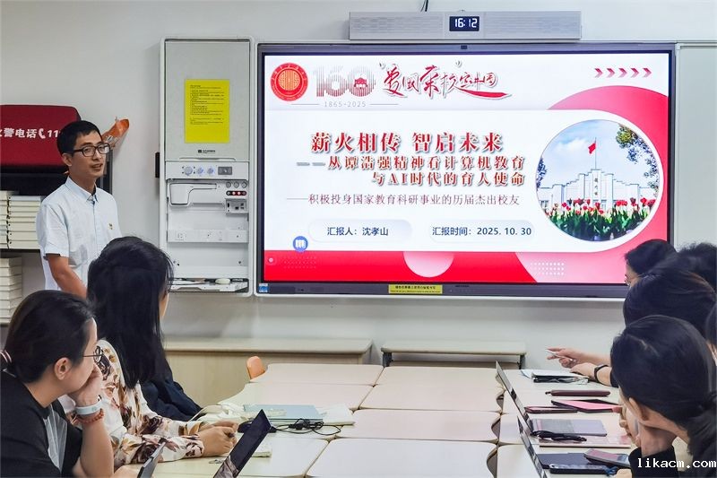2025年10月30日,国际部第四支部全体党员齐聚先棉堂209教室,一起听取了爱国荣校宣讲团沈孝山老师的讲座——《薪火相传 智启未来——从谭浩强精神看计算机教育与AI时代的育人使命》。