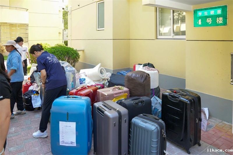 学校安排多辆校园接驳车往返于校门与宿舍区之间,工作人员协助学生搬运行李,保障学生安全便捷抵达宿舍。住宿生有序进入寝室,随后自行整理个人物品、打扫布置宿舍。